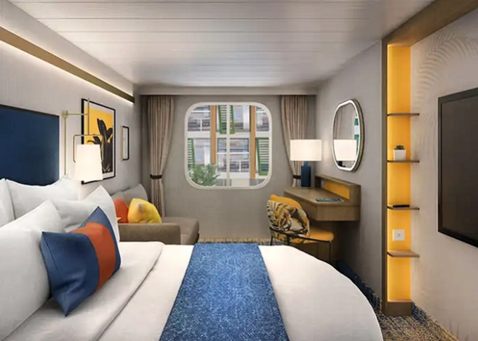 | T5 - Vnútorná kajuta s oknom / Surfside Family 17 m². Neotvárateľné okno s výhľadom na štvrť Surfside. 8. paluba vpredu. Max 4 osoby. | 4 040 € 1 010 € za osobu |