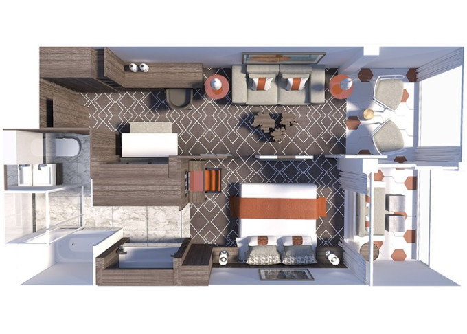 | CS - Celebrity Suite 43 m² + balkón 5 m². 11,12. paluba. Max 4 osoby. Výhody Suite. | 18 484 € 18 484 € za osobu | ||