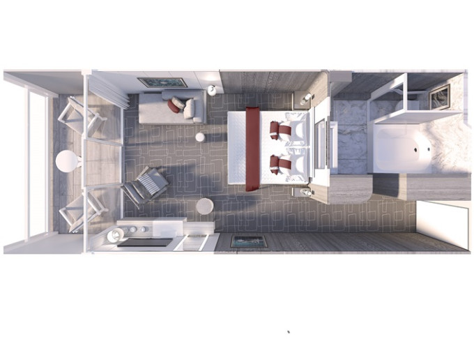 | EV - Edge Villa 69 m² + terasa s vírivkou 19 m². 2-poschodový apartmán. Max 4 osoby. 15,16. vpredu. paluba. Výhody Suite. | 16 582 € 16 582 € za osobu |