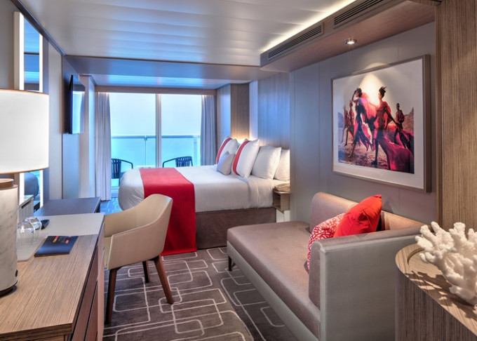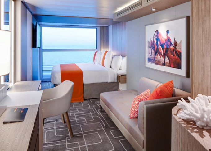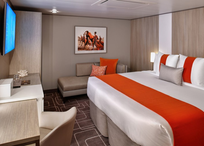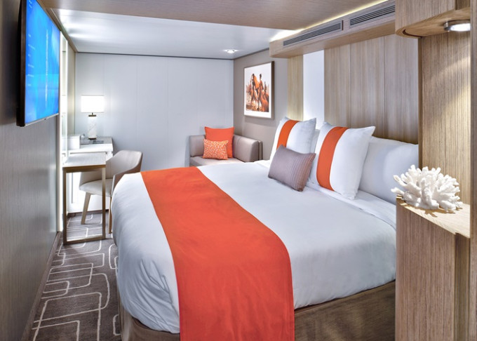 - Kajuty sú umiestnené v blízkosti lodného Spa. K ich vybaveniu patrí posilnený systém vzdušnej filtrácie, posteľ Queen-Size (v kategóriách Edge King-Size), veľké zasúvacie sklenené dvere, exkluzívne posteľné prádlo eXhale®, veľkorysé skladovacie priestory.