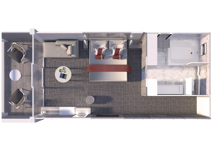 | S1 - Sky Suite 30 m² + balkón 7 m². 7. až 12. paluba. Max 4 osoby. Výhody Suite. | 13 676 € 3 419 € za osobu | ||