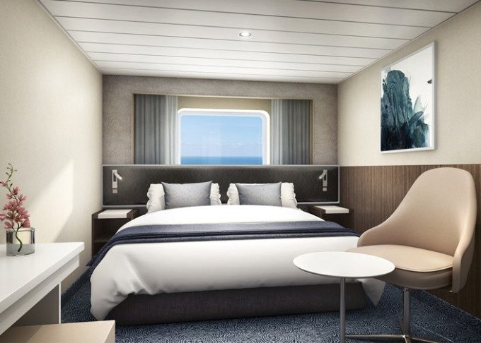 | O3 - Vonkajšia kajuta Deluxe 26 m². Veľké neotvárateľné okno. 8. paluba - vpredu. Max 3 osoby. | 8 084 € 4 042 € za osobu |