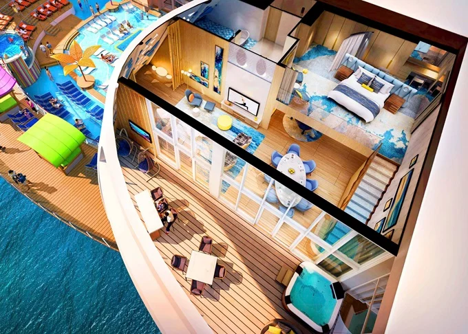 RL - Royal Loft Suite 141 m² + balkón s vírivkou 78 m². 2-podlažný apartmán. 18. paluba. Max 6 osôb. Výhody Royal Suite Star Class. 9 234 € 4 617 € za osobu