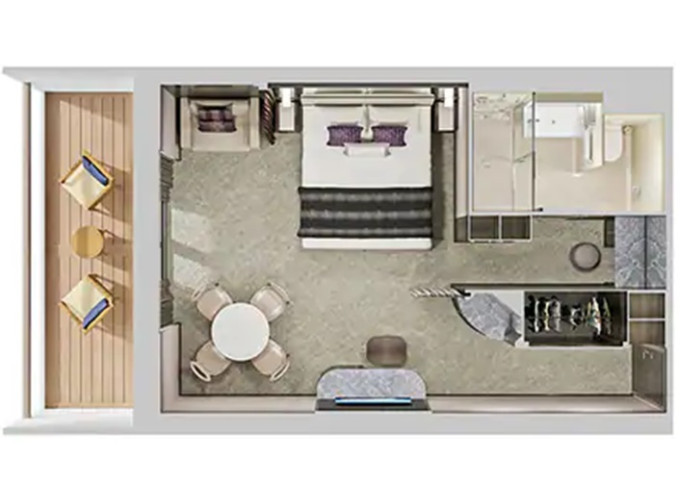 | M1 - Club Suite Aft-facing 25-39 m² / balkón 5-7 m². 11. paluba - vpredu. Max 4 osoby. Výhody Club. | 7 636 € 3 818 € za osobu | ||