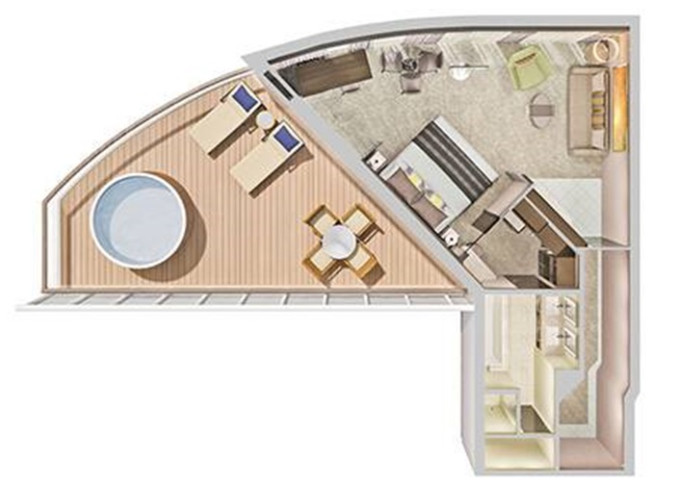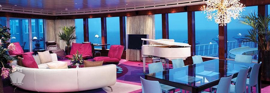 | H2 - The Haven Deluxe Owner's Suite 111 m² / balkón 52 m². 15. paluba - vpredu. Max 4 osoby. Výhody The Haven. | 26 718 € 13 359 € za osobu |
