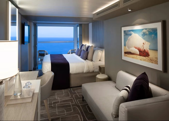 • Kajuty sú umiestnené v blízkosti lodného Spa. K ich vybaveniu patrí posilnený systém vzdušnej filtrácie, posteľ Queen-Size (v kategóriách Edge King-Size), veľké zasúvacie sklenené dvere, exkluzívne posteľné prádlo eXhale®, veľkorysé skladovacie priestory.
