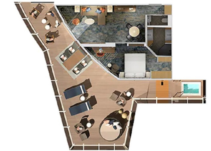 | HS - Suite Havana Cabana 28 m² + vonkajšie patio 8 m². 8. paluba vpredu. Tropický štýl, vstup do exkluzívnej zóny Havana. Výhody Suite. Táto kajuta je určená pre hostá od 12 rokov. | 4 082 € 2 041 € za osobu | ||
