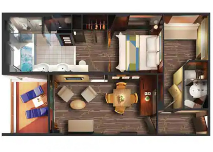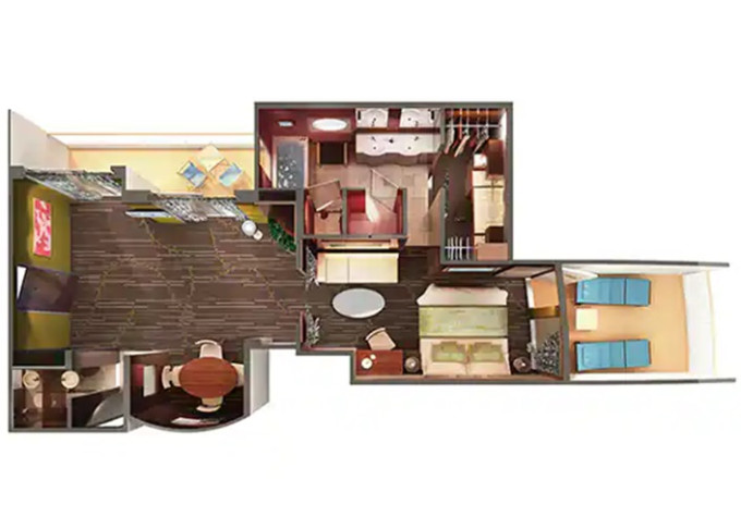 | S4 - Deluxe Family Suite 53 m² / balkón 7 m². 11. paluba - vpredu, stred. Max 6 osôb. Výhody Suite. | 15 948 € 7 974 € za osobu | ||